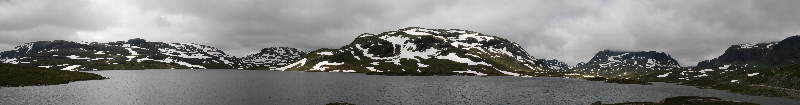 Kurz nach Skare erreichten wir die E 134, die wir in Richtung Oslo einschlugen. Nach wenigen Metern steigt die Strasse steil an und führt uns bis auf ungefähr 1100 Meter üNN auf die Hardangervidda, Europas größte Hochebene. Sie ist ein karges und baumloses Hochplateau, das mit vielen Seen gesprenkelt ist. Am Haukelifjell legten wir eine kurze Pause ein und genoßen die herrliche Umgebung.